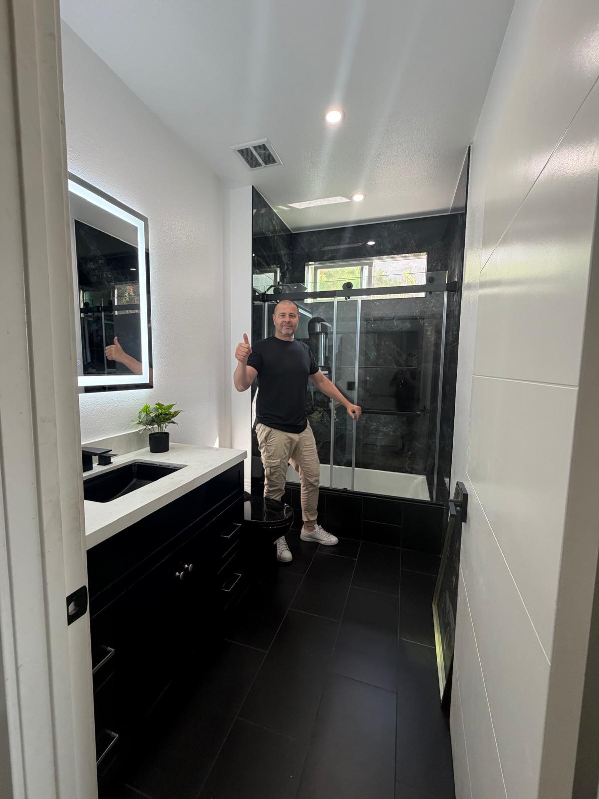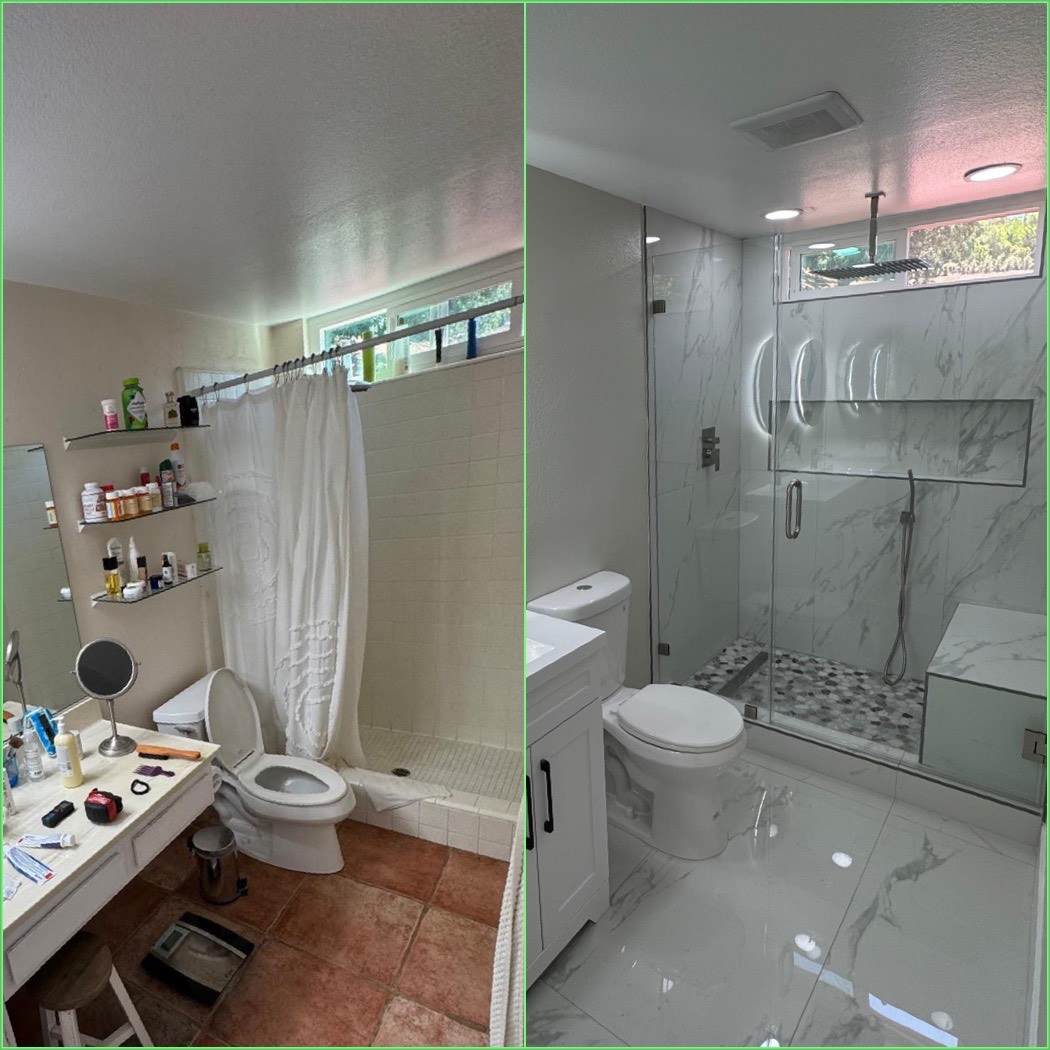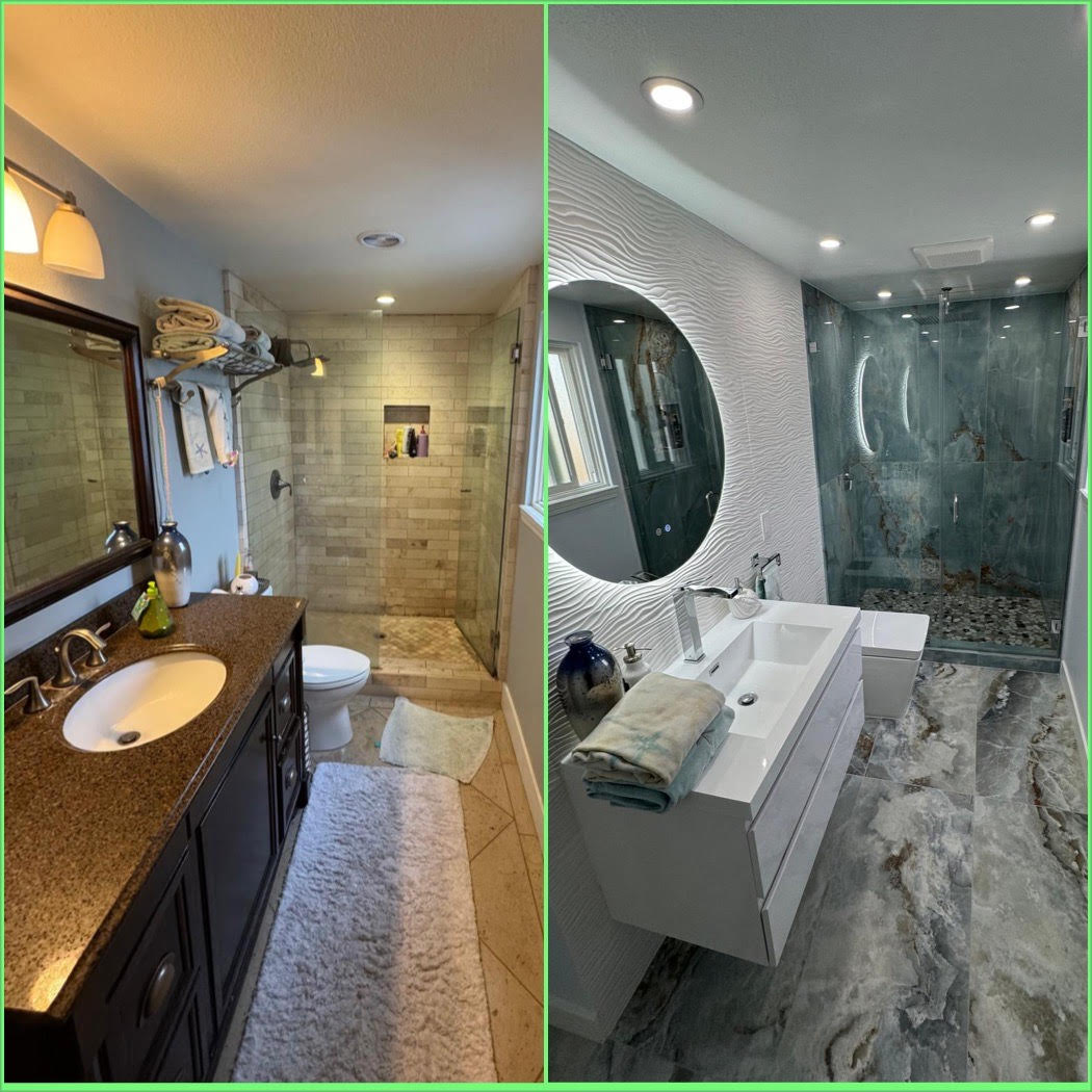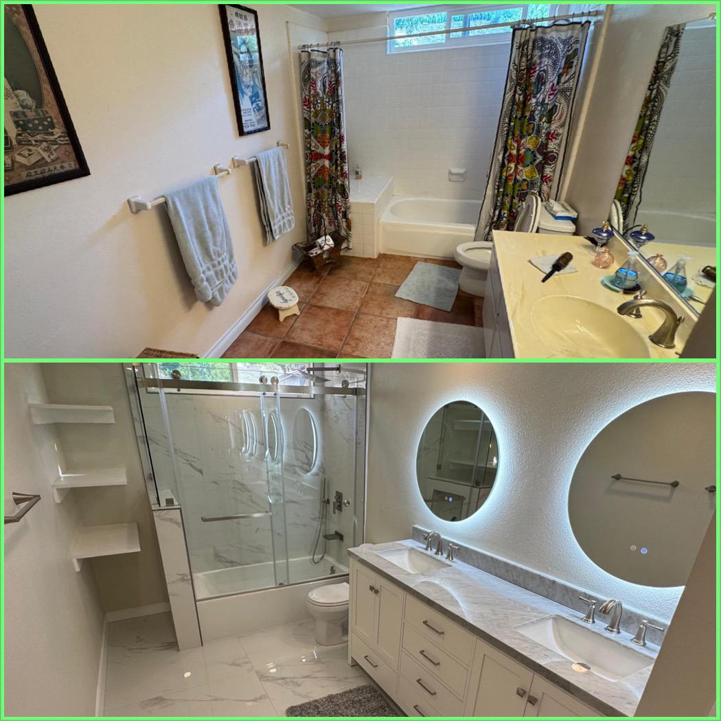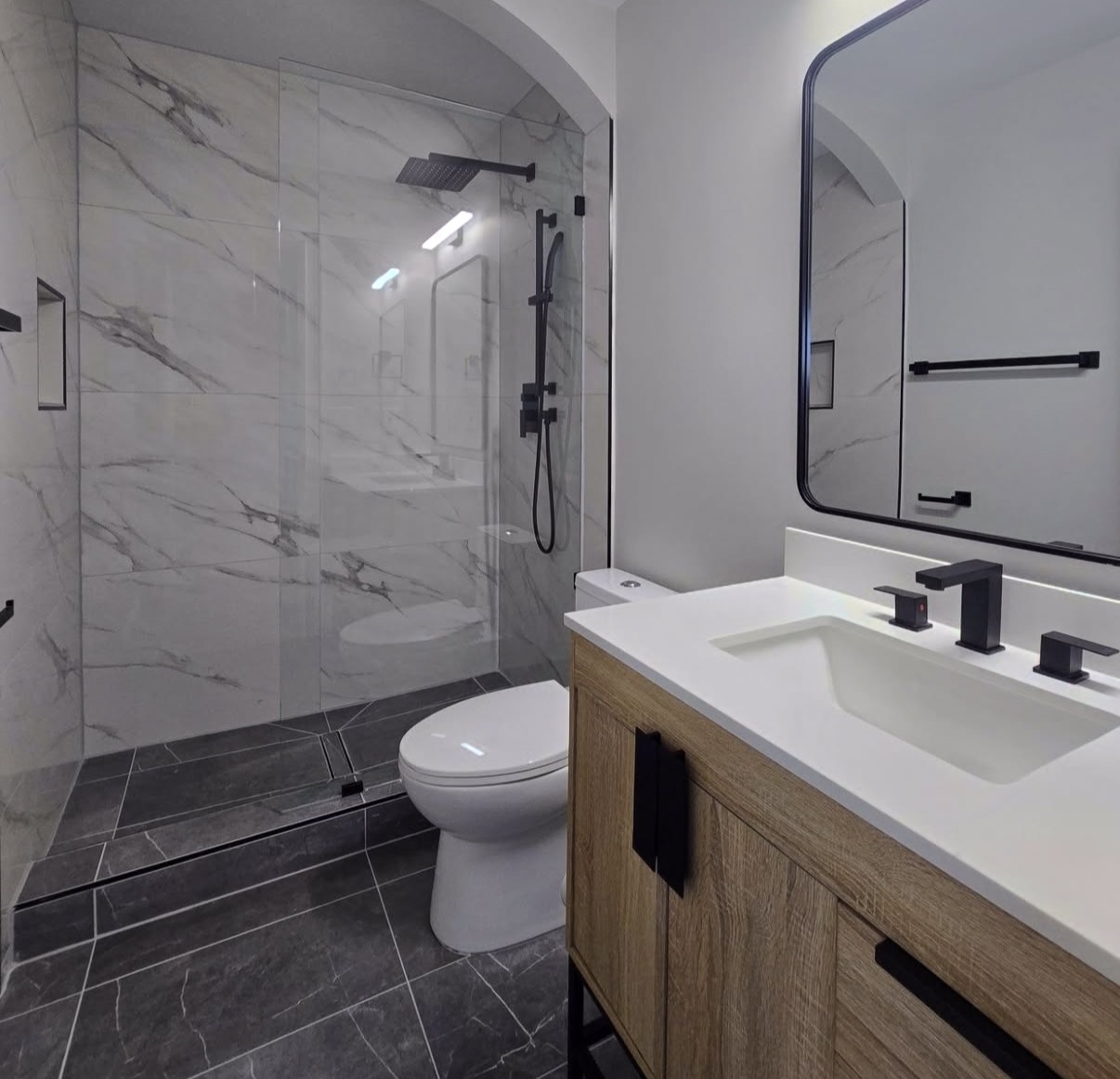 We offer complete bathroom remodeling services, including demolition of the old bathroom, electrical work, plumbing, tub or shower installation, tile, painting, vanity installation, recessed lighting, mirrors, and fixtures. We provide a full turnkey solution from start to finish.