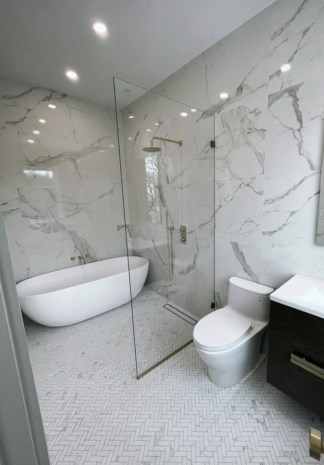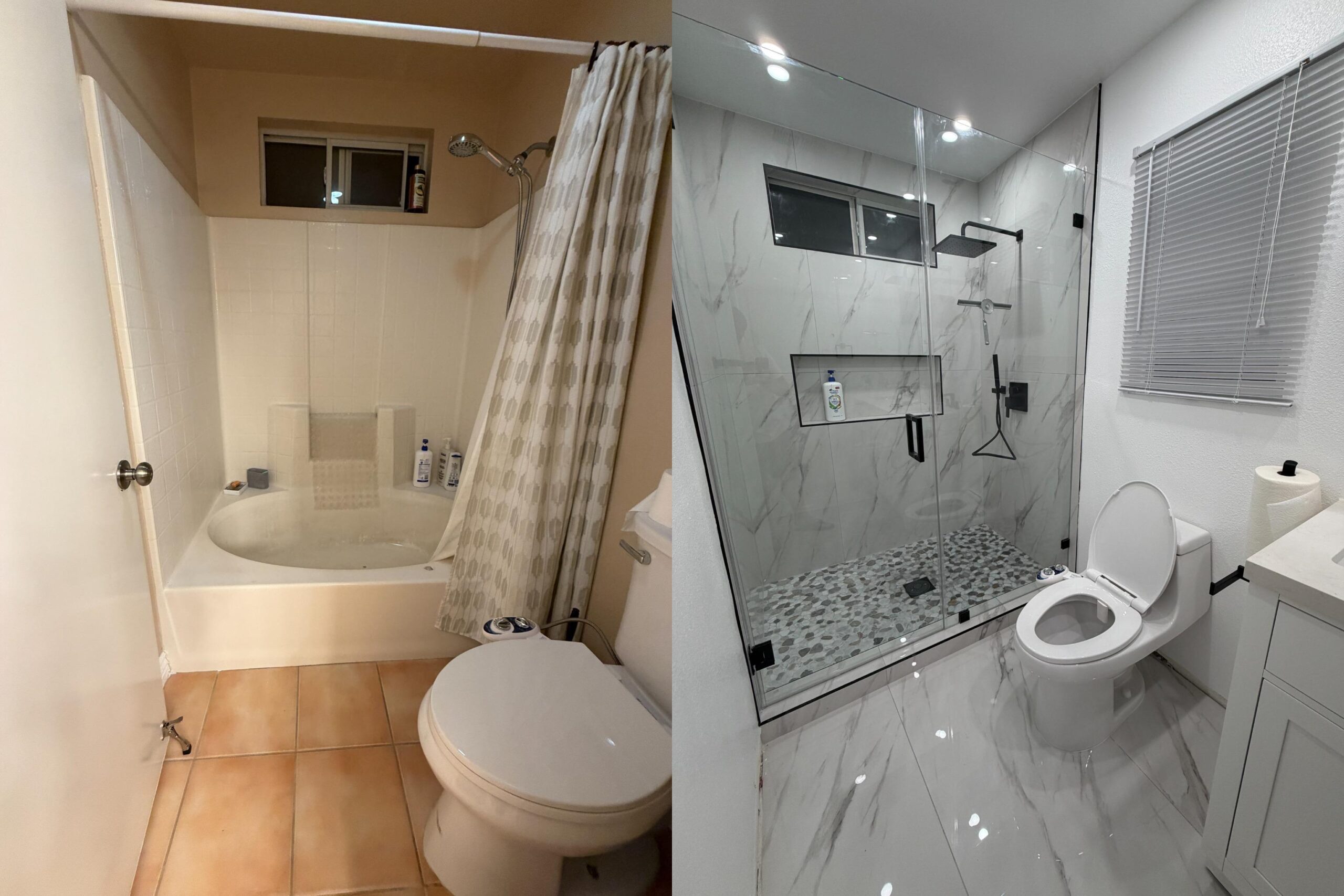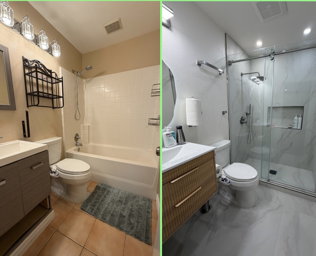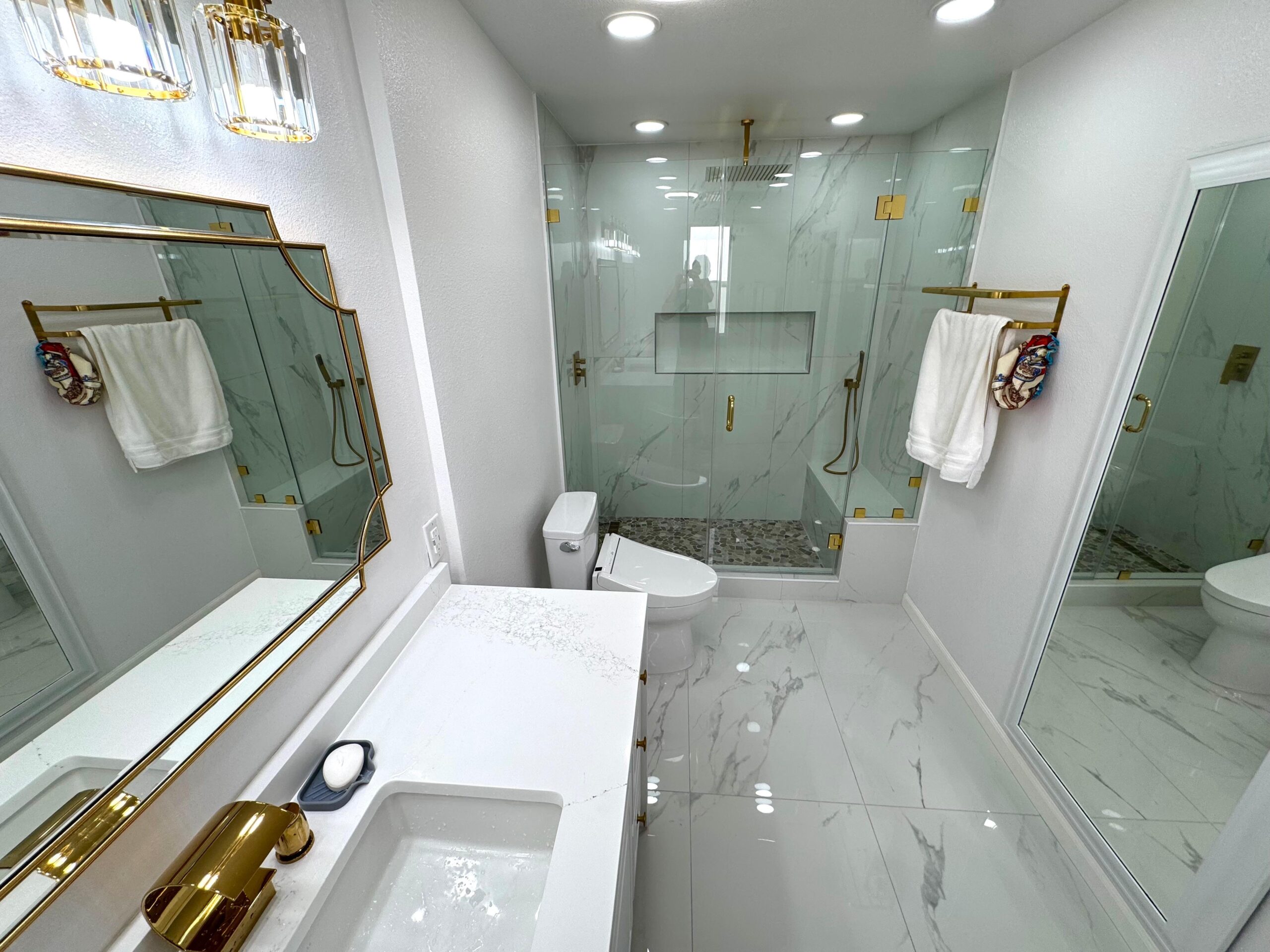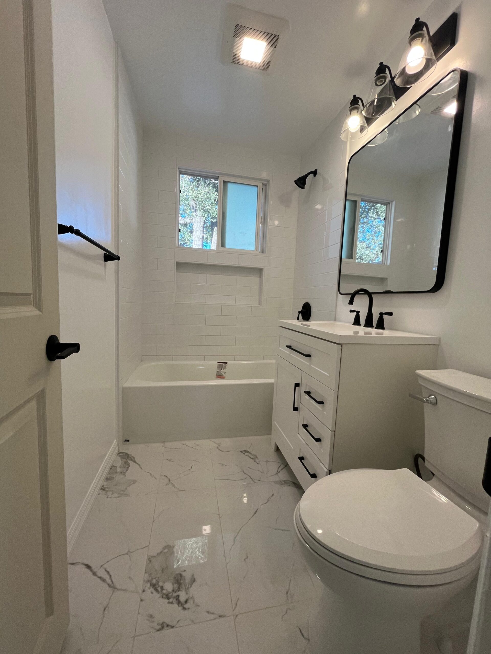 We offer complete bathroom remodeling services, including demolition of the old bathroom, electrical work, plumbing, tub or shower installation, tile, painting, vanity installation, recessed lighting, mirrors, and fixtures. We provide a full turnkey solution from start to finish.